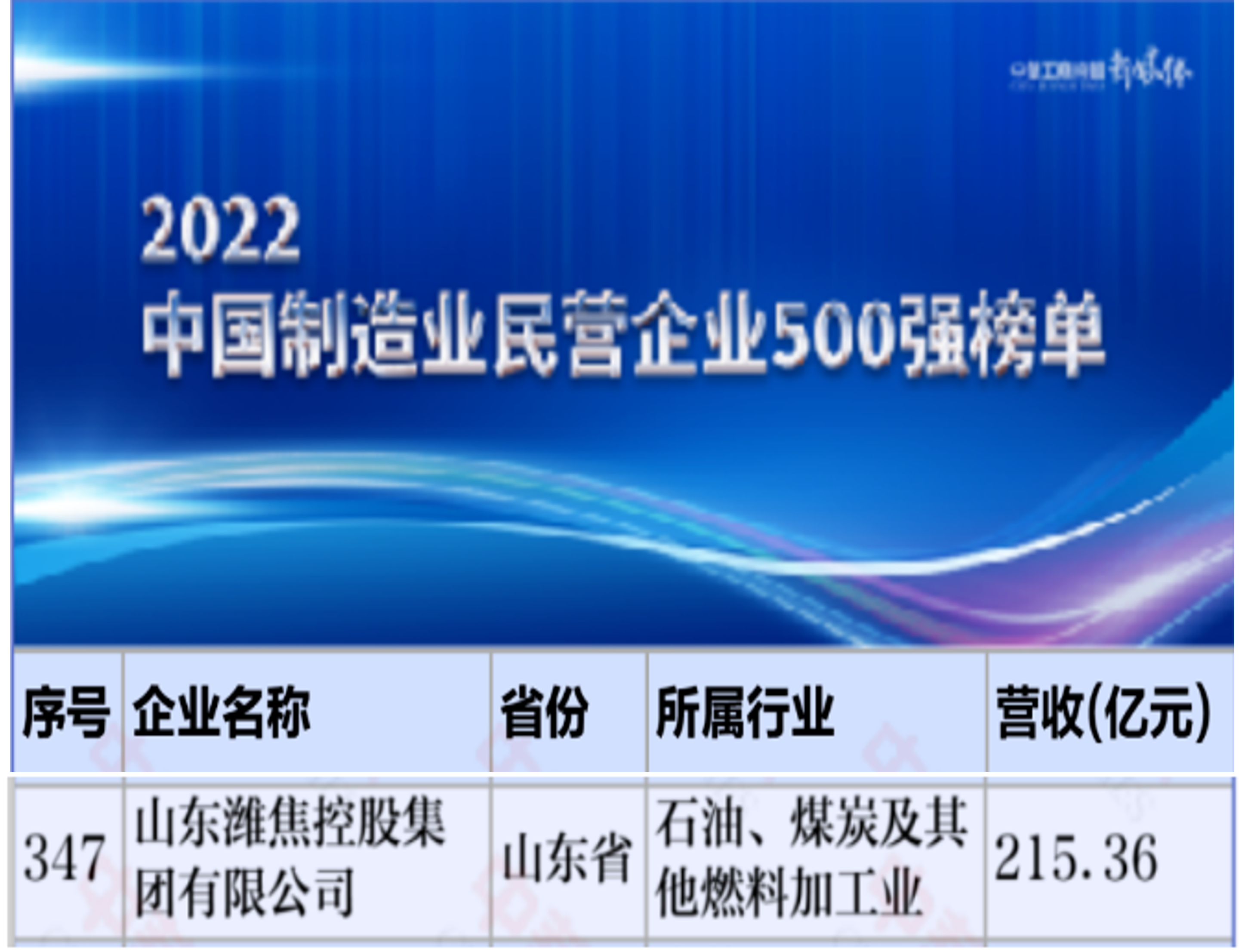 【喜訊】濰焦再上榜單